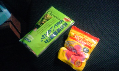 乾燥したイトミミズが1センチ角のブロック状になって入ってんねんけど、さすがに1ブロックはでかいからそれを半分に割って若干濡らしてからピンセットでチョウスズの前に差し出したらパクっとね。
